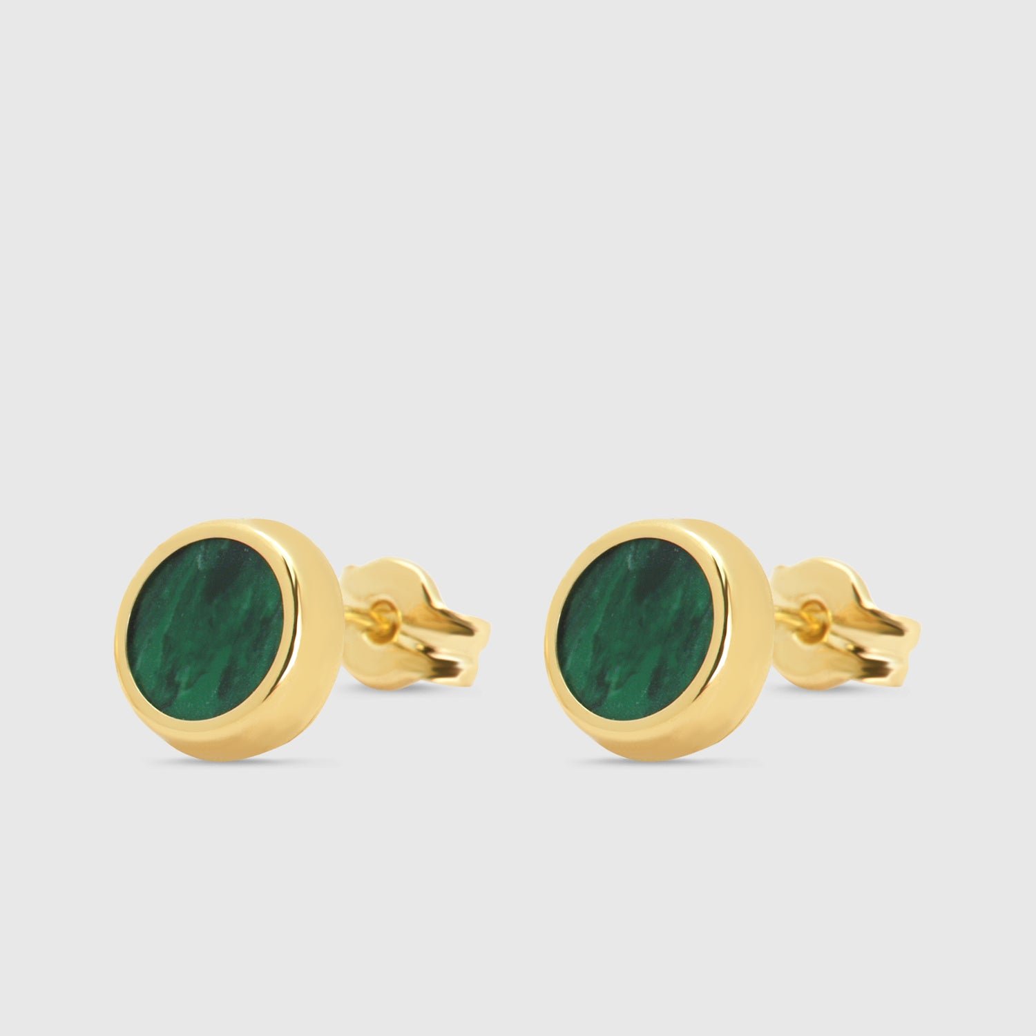 Pendientes Oro 18K redondos con piedra Malaquita.