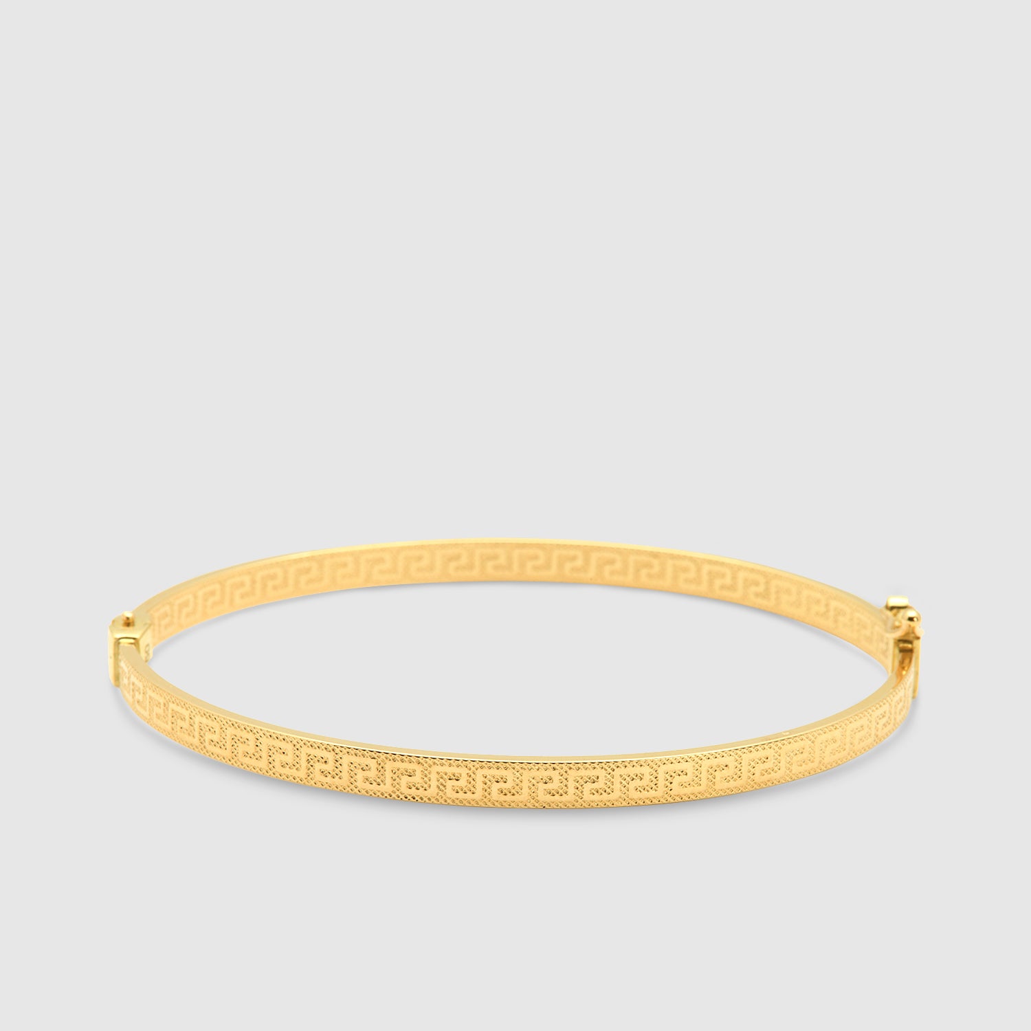 Pulsera Oro 18K rígida tableada con dibujo de greca.