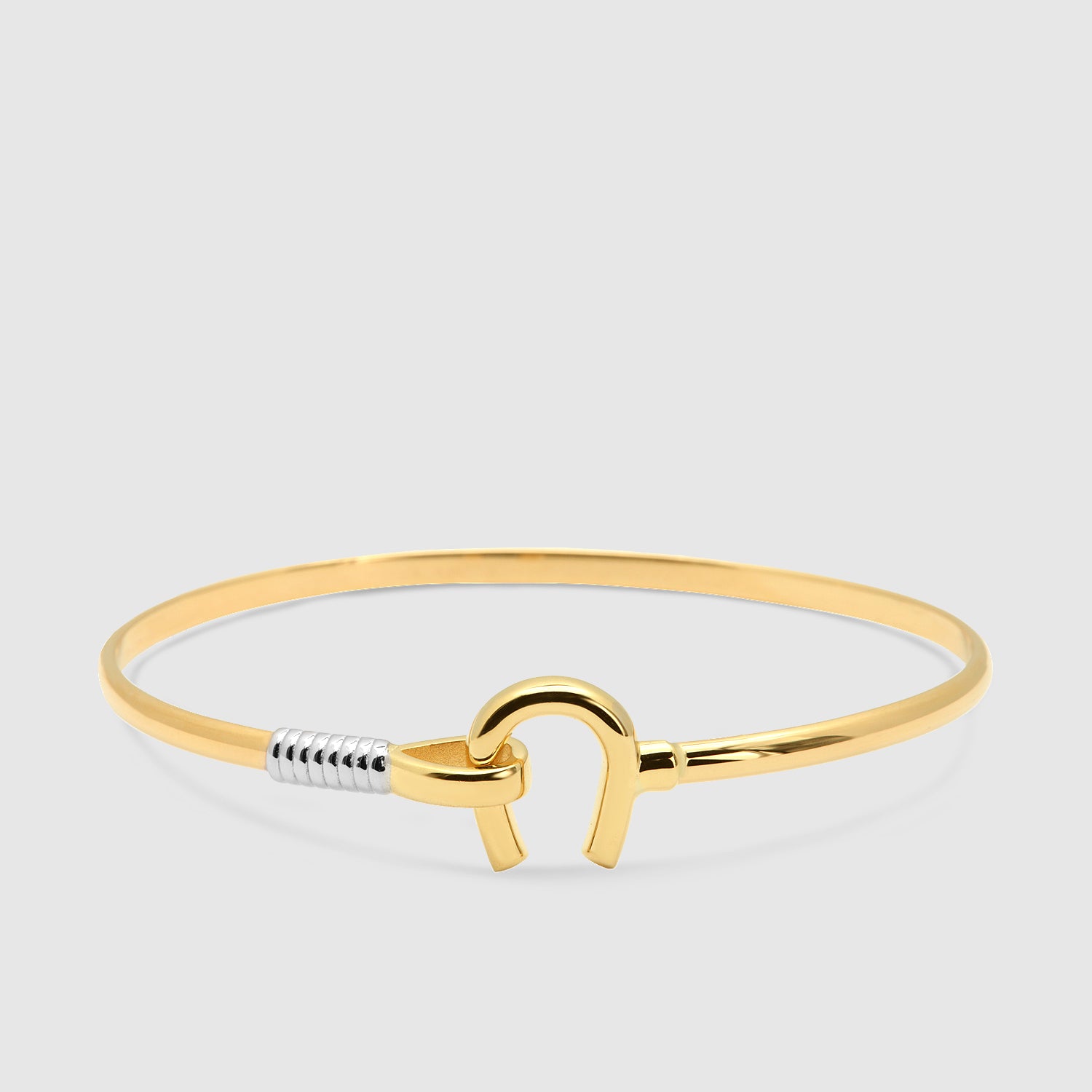 Pulsera Oro 18K rígida con motivo de herradura en hilo de media caña y detalle en Oro Blanco en la parte del motivo.