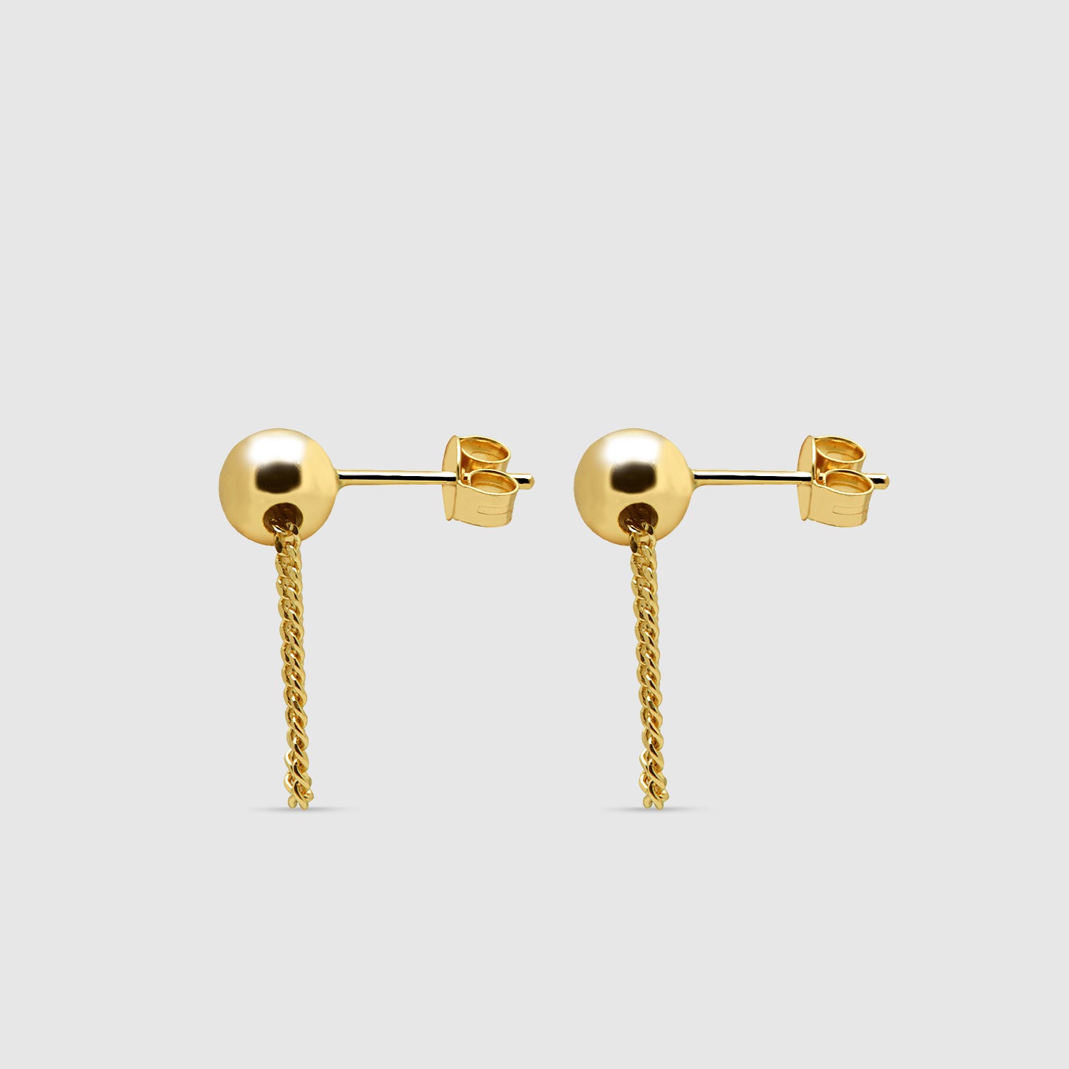Sus esferas pulidas anclan una cadena fina que cae con naturalidad, creando un arco dorado que acompaña cada movimiento con suavidad. Con carácter, para quien encuentra la belleza en los detalles.
