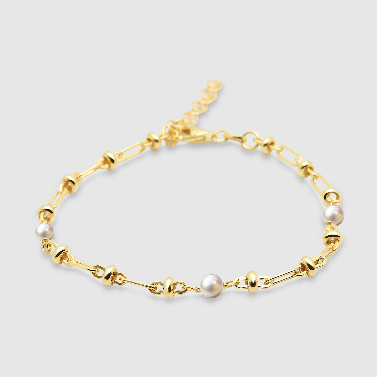 Pulsera Plata 925 tipo cadena eslabón con perlas.